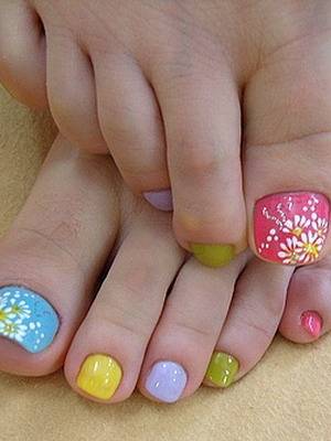 К новому году ноготки на ногах можно украсить снежинкой, а к 8 марта цветочкам.
