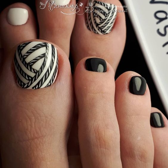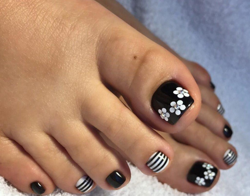 Черный цвет – это настоящая классика в мире моды и дизайна ногтей. В этом сезоне черный педикюр не только не потерял своей актуальности, но и стал еще более популярным. Он является универсальным и практически незаменимым элементом в создании стильного и элегантного образа. В сочетании с другими яркими цветами, черный педикюр позволяет создавать уникальные и необычные сочетания, которые подчеркнут вашу индивидуальность и стиль. Например, черный педикюр с золотой или серебряной фольгой создаст эффектный и роскошный образ, а черный педикюр с белыми или розовыми элементами – нежный и романтичный. Кроме того, черный педикюр можно украсить стразами, глиттером или другими декоративными элементами, что добавит вашему образу некоторую экстравагантность и шик. В этом сезоне черный педикюр – это не просто классика, а настоящий тренд, который поможет создать неповторимый образ.