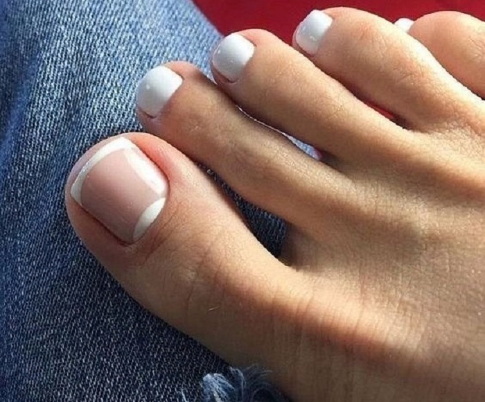 Еще один дизайн, который уже несколько лет подряд не теряет популярности. Френч одинаково успешно применяется для создания стильного маникюра, а также педикюра на женских ногах.