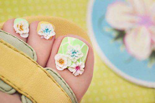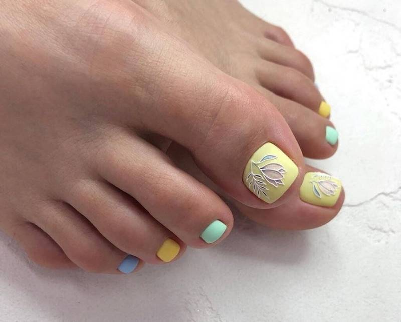 Цветы, узоры, маникюрные композиции – эти и другие вариации дизайна преобразят спокойную монотонность ваших ноготков на ногах.