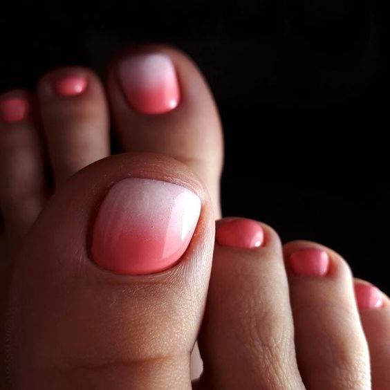 Маникюр выполненный в виде аккуратного перехода между оттенками кажется не утратят популярности никогда. Это актуальная и для педикюра.