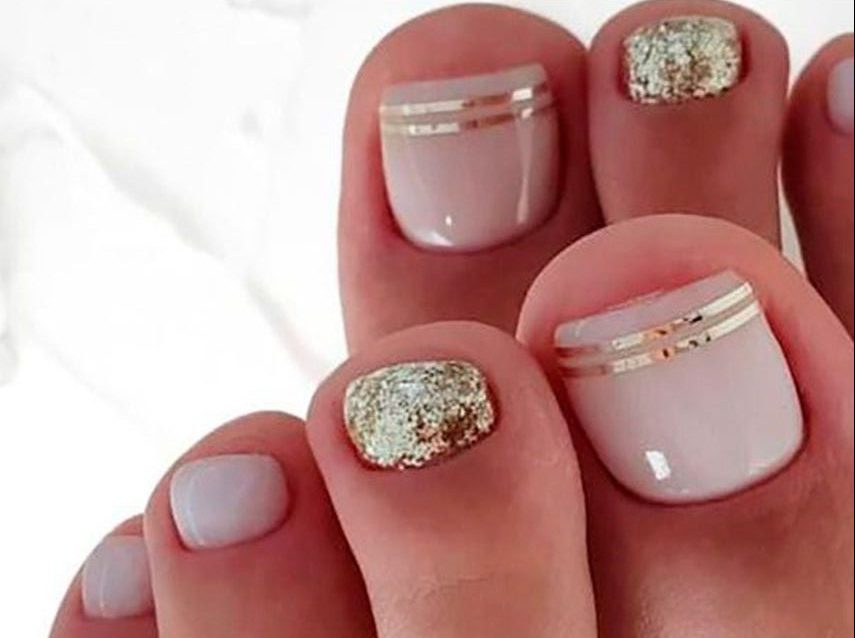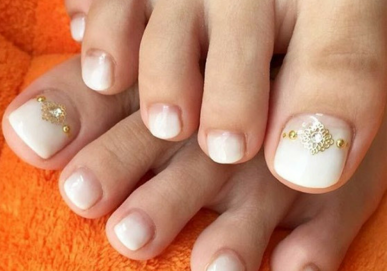 Здесь как и с синими и красными цветами есть свои виды. Классический педикюр может быть декоративно-золотым, иметь пастельные тона, белые и иметь множество других вариаций.