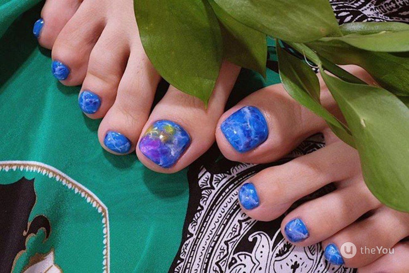 Синий особенно хорошо сочетается с белым, черным, а также с золотым, серебряным. Этот весенний педикюр имеет много оттенков, в моде аквамарин, лазурный, кобальтовый. Выбирайте смелые тона — и пусть педикюр будет заметным!