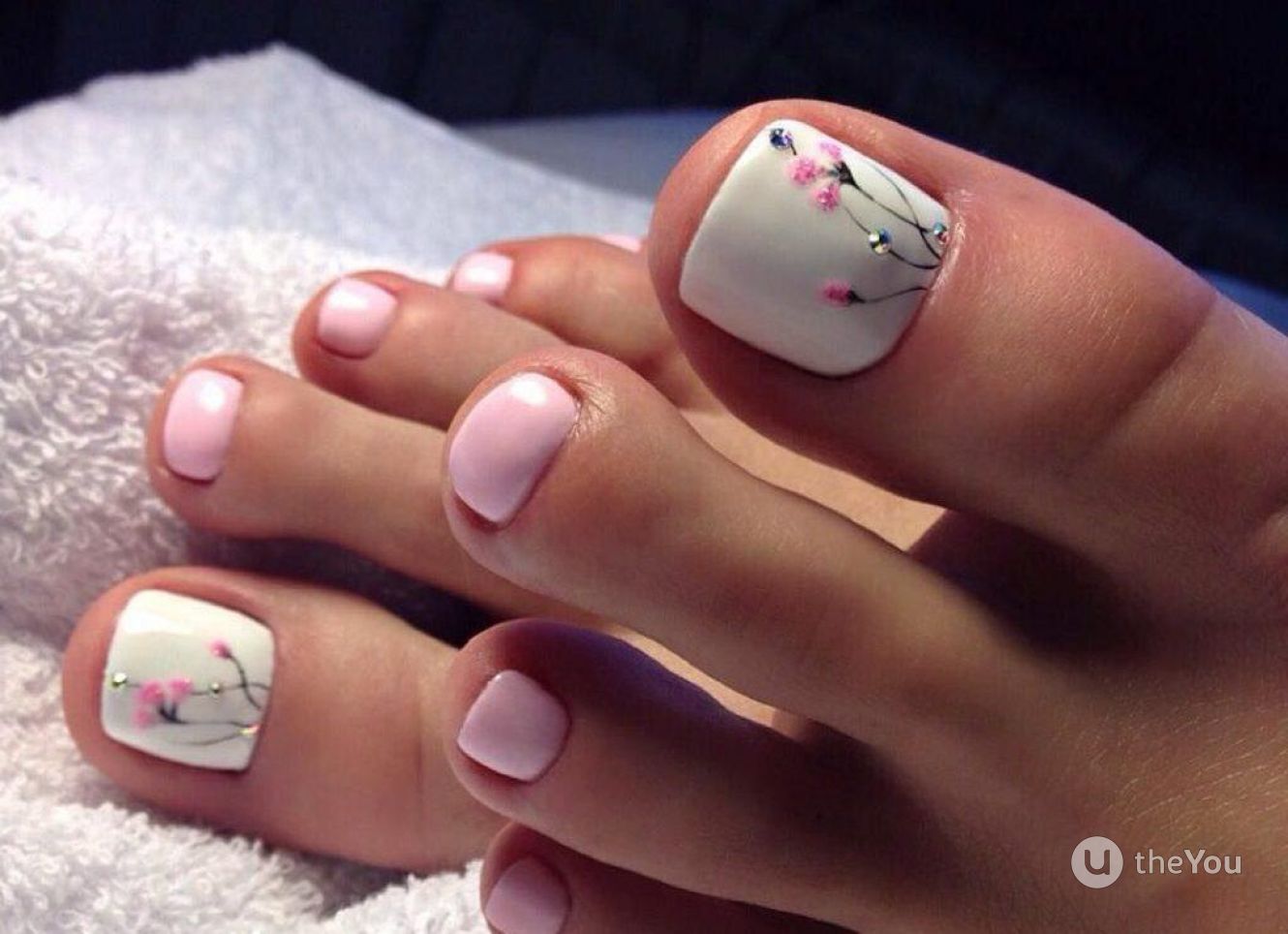 Цветы, узоры, маникюрные композиции – эти и другие вариации дизайна преобразят спокойную монотонность ваших ноготков на ногах.