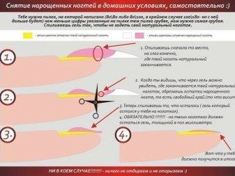 - Наращённые гелем ногти нельзя просто так снять. Их нужно обязательно спиливать. Это можно делать аппаратом или пилкой с высокой абразивностью.