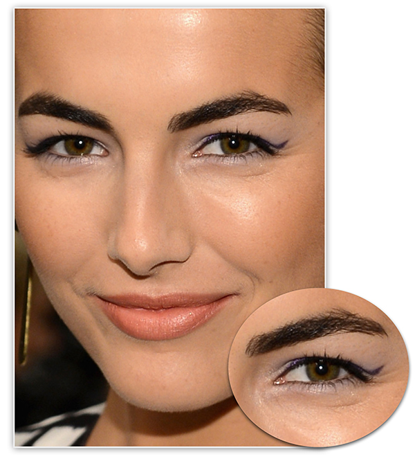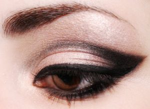 Эта техника подходит для округленных глаз, так как зрительно удлиняет их. Уголок ближе к носу можно осветлить нежными тенями или хайлайтером, линия между ресничек обводится черным цветом (можно выбрать также коричневый, темно-зеленый или бордовый).