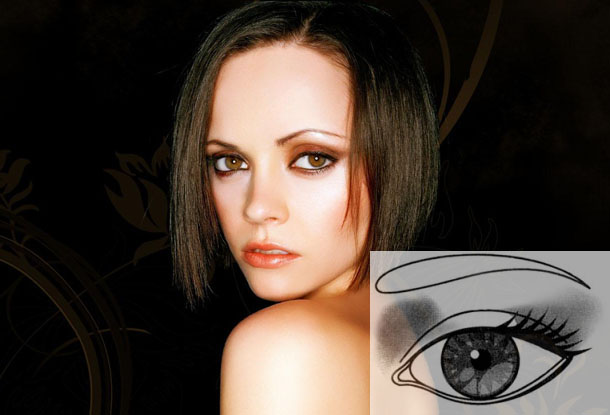 При заполнении кожи века тенью, можно использовать один цвет или пошагово растушевывая, сделать плавные переходы между несколькими цветами. В первом случае любая, понравившаяся тень наносится на веко и растушевывается до достижения плавного соединения с контуром, но, не стирая и не задевая его.