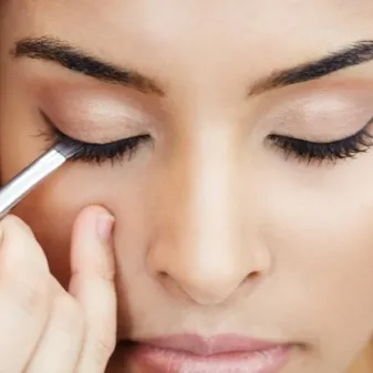 - Подготовьте ваши глаза и начните с применения светло-фиолетового оттенка теней для век