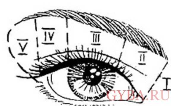 Важно запомнить, что тени, как и в предыдущей технике, мы наносим не только на зону подвижного века, а на всю вертикальную площадь до самой брови. При желании, конечно, зоны нанесения цветов можно условно разделить не на пять зон, а на четыре