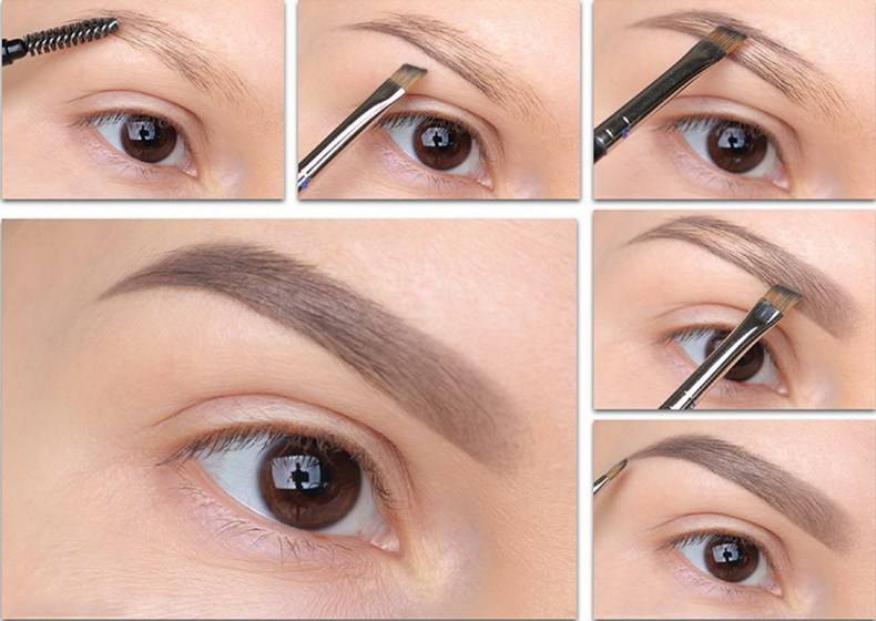 - Завершается макияж бровей наложением фиксирующего геля (прозрачный или в цвет бровей).