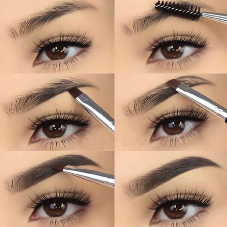Поэтапный макияж лица включает в себя прорисовку бровей, которая начинается с обязательного расчесывания волосков специальной щеточкой.