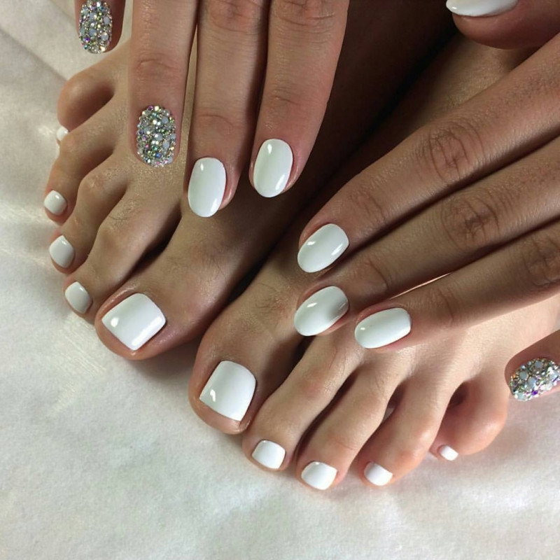 Изумительный, шикарный, чистый, но в тоже время простой и лаконичный белый цвет лака в однотонном дизайне маникюра и педикюра – абсолютный и универсальный тренд 2022. Для белоснежного нейл-дизайна очень важна правильная и четкая форма ногтей, самая популярная из которых в этом году – миндалевидная. Можно выбрать также квадрат или овал, но главное требование — четкость и строгость линий, поскольку белый цвет не прощает погрешностей. Маникюр и педикюр с белым покрытием можно немного приукрасить, непременно соблюдая чувство вкуса и меры. Это могут быть украшение ногтевых лунок стразинками или блестками, небольшие вкрапления серебристой потали или декоративных камешков на отдельных ногтях.