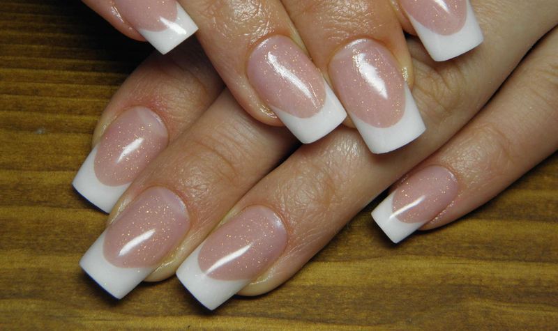 Френч, или французский маникюр. Представляет собой покрытие розового цвета на основной части ногтя в сочетании с полоской по верхнему краю. В классическом виде френча дуга бывает белого цвета, но в последнее время можно увидеть самые разные варианты “улыбок”, для этого используют лак более ярких оттенков или глиттер, рисуют узоры контрастным цветом.