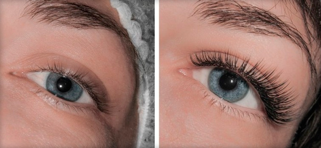 На фото ниже можно увидеть разницу между эффектом 3Д и наращиванием ресниц классическим методом.