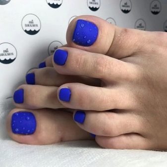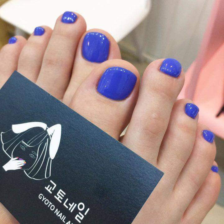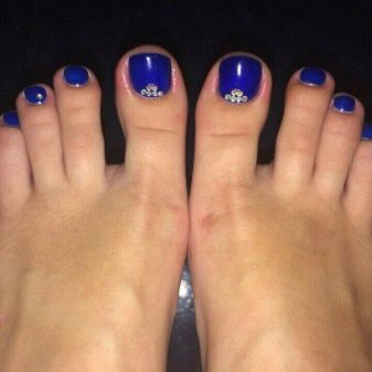 Сам по себе синий цвет довольно насыщенный и будет привлекать внимание к ухоженным ногам. Можно успешно комбинировать оттенки, выбирать украшения