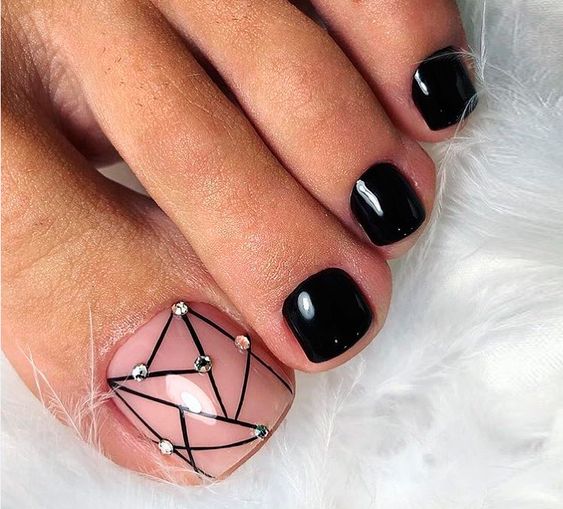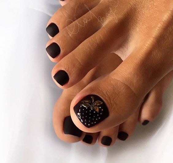 Самым востребованным цветом для педикюра весной 2023 года считается черный. Этот цвет хорош как в глянцевом, так и в матовом исполнении. С черным цветом с легкостью сочетаются любые декоры и цвета.