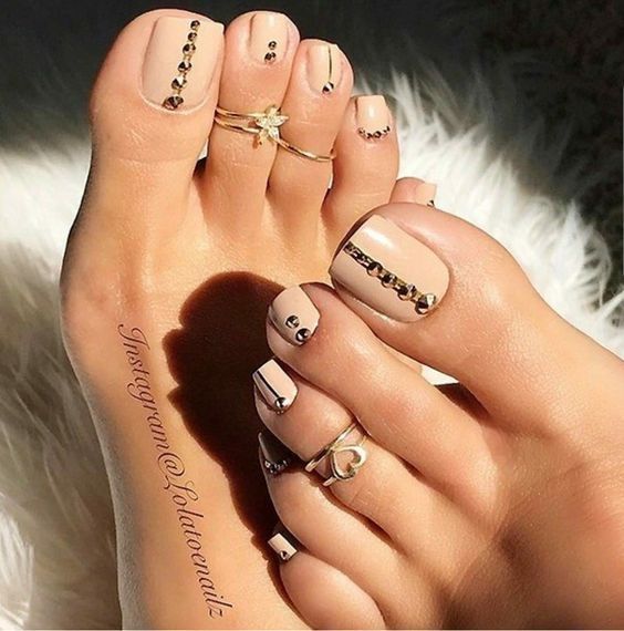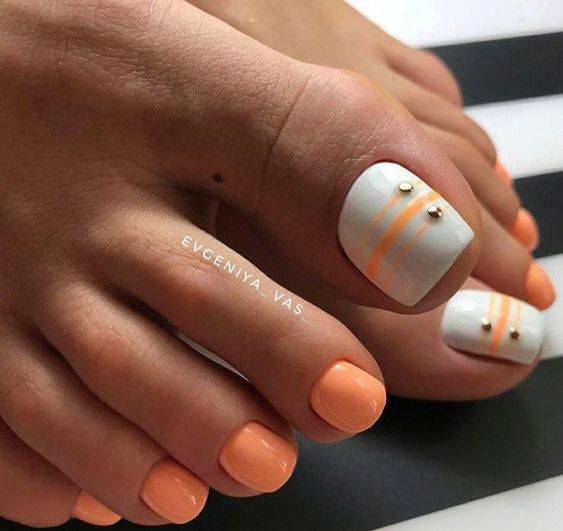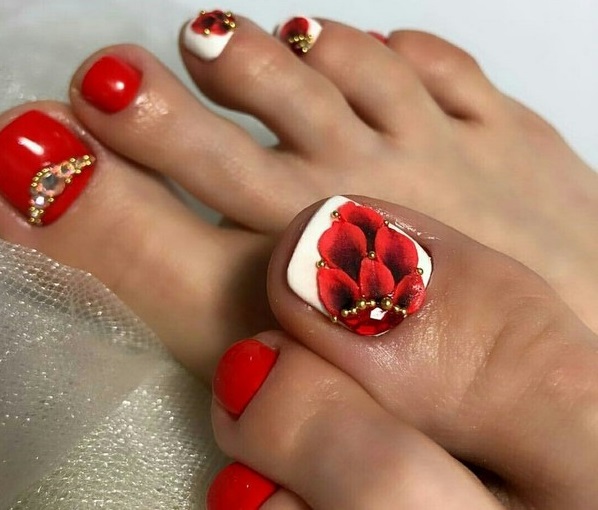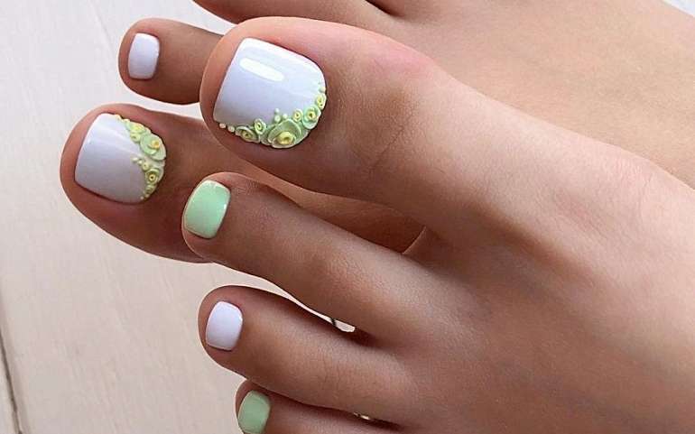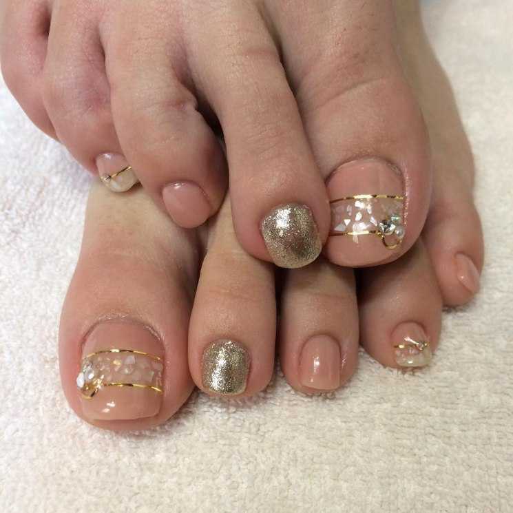Здесь как и с синими и красными цветами есть свои виды. Классический педикюр может быть декоративно-золотым, иметь пастельные тона, белые и иметь множество других вариаций.