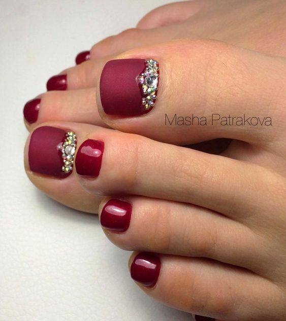 Педикюр малинового цвета уже давно радует обладательниц прекрасного пола. Этот яркий, сочный и модный оттенок не оставит равнодушным ни одну девушку.