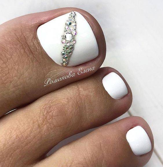 Вариаций применения белого цвета в дизайне педикюра на лето очень много, выбор зависит исключительно от личных предпочтений.