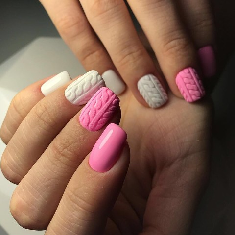 Модная техника получила в 2024 новое прочтение – микс узоров разных оттенков на одном ногте. Для реализации этой идеи берите хорошо сочетающиеся оттенки (например, молочный, розовый и серый).