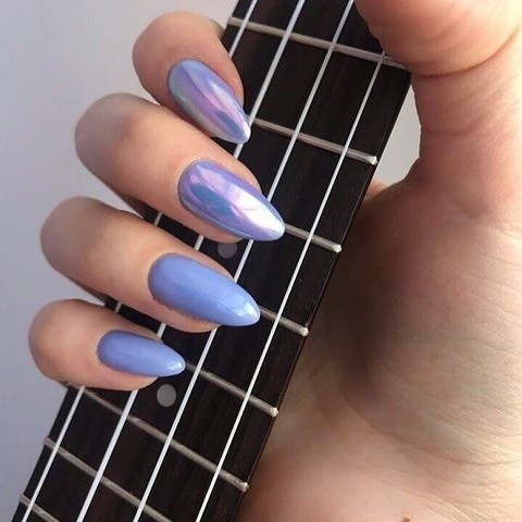 В наступившем году большой популярностью будет пользоваться голографическая втирка. Она дает многогранные переливы и сочетается как с нюдовыми, так и с контрастными образами.