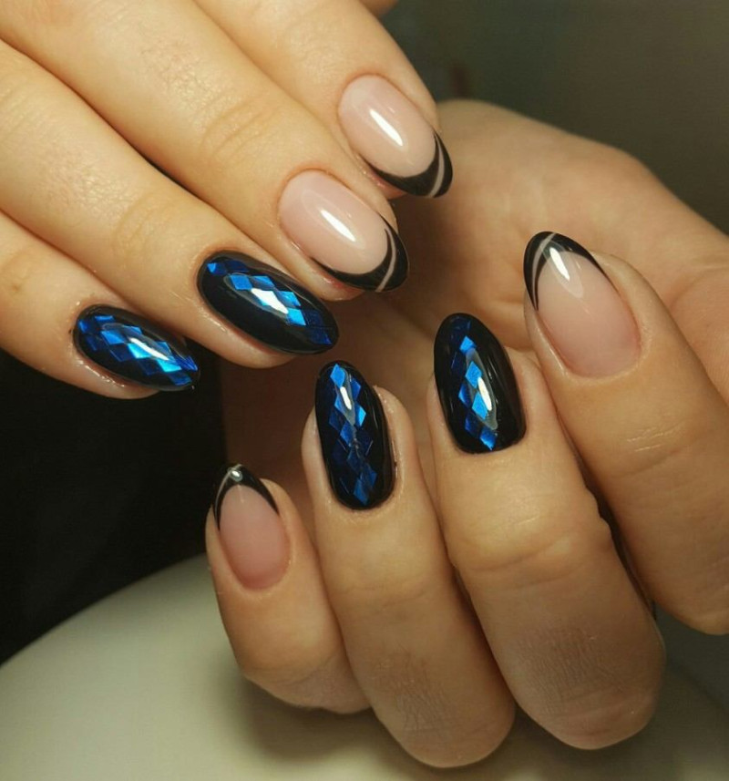 - Комбинированный маникюр может включать элементы всех выше перечисленных разновидностей. Здесь нет предела фантазии, но советуем не слишком увлекаться декором. Не перегружайте ноготки росписью и блестками, это может выглядеть нелепо.