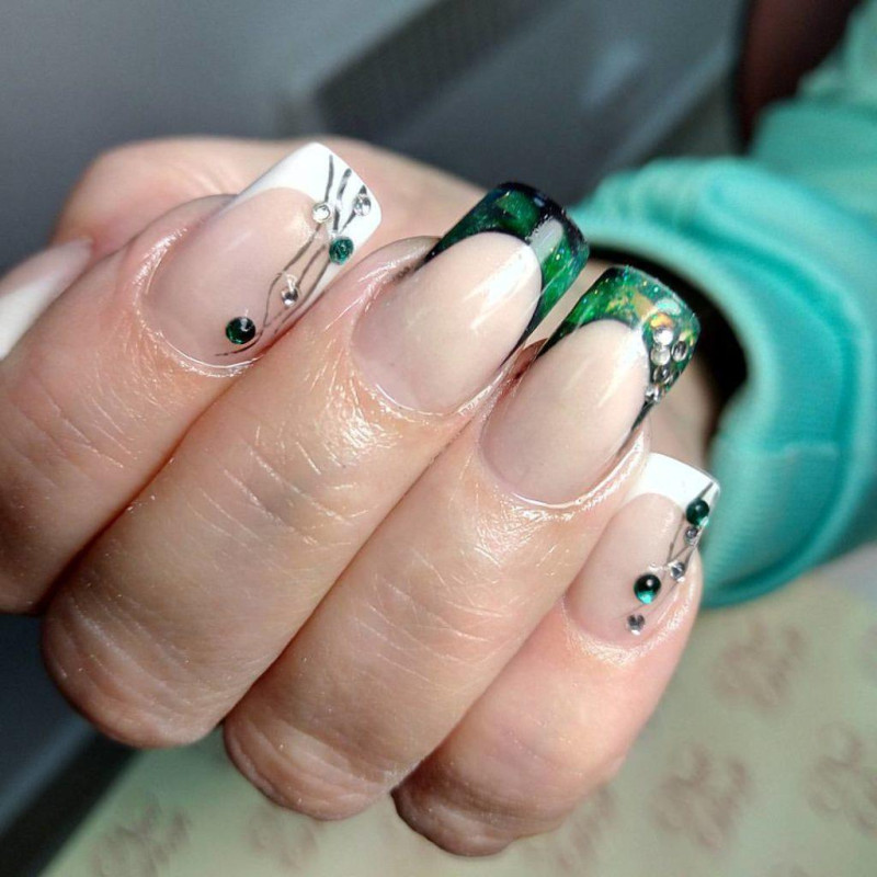 Классический френч со стразами подойдет как для работы, так и для вечера.
