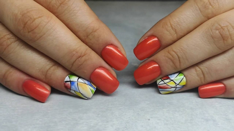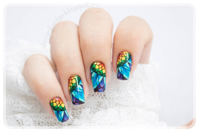 Современный витраж на ногтях можно выполнять в разнообразных дизайнах: