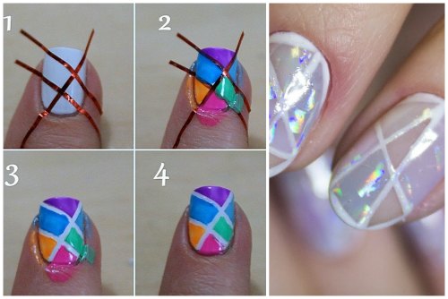 Если не желаете наращивать ногти, а можете похвастаться своими, то попробуйте упрощенный вариант витражного маникюра. Эффект будет не тот, но нечто похожее вы получите.