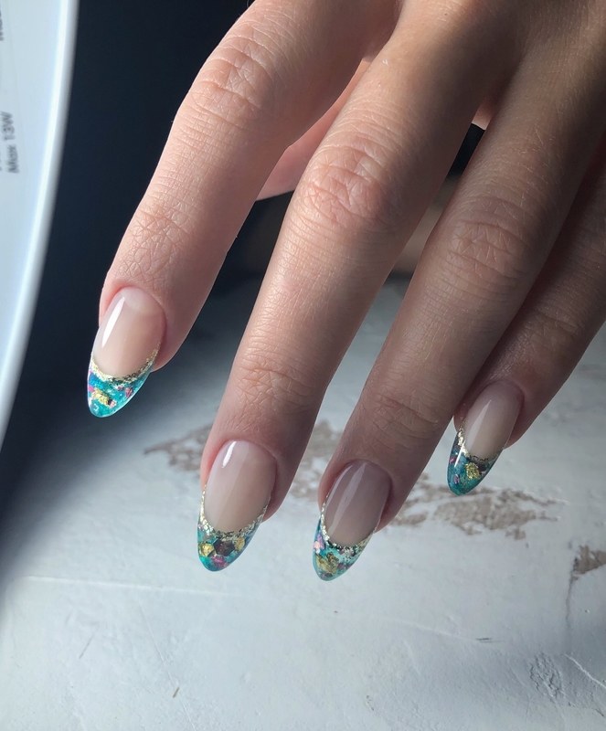 - Витражный маникюр гель-лаком, создающий эффект хрупкости, нежности. Это аквариумный и стеклянный дизайн.