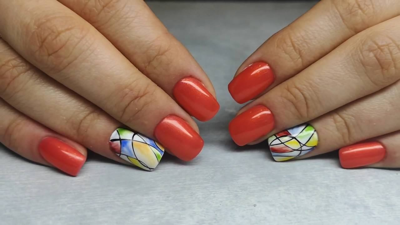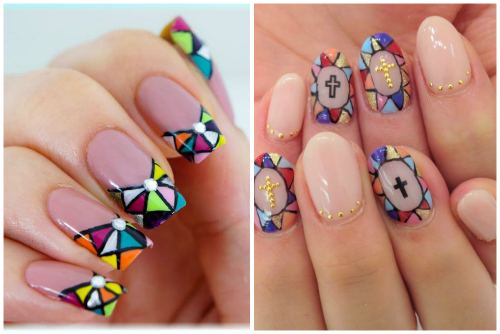Современный витраж на ногтях можно выполнять в разнообразных дизайнах: