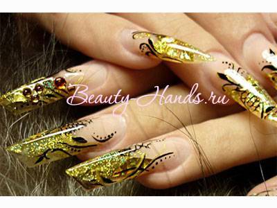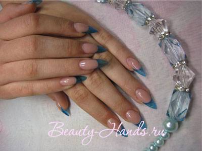 Как мы уже говорили, такой нейл-дизайн возможен только на гелевых ногтях. Профессионалы рекомендуют делать ноготки внушительной длины и вытянутой формы, чтобы рисунок смотрелся выигрышней. Для наращивания используется витражный гель. Он содержит светоотражающие частицы, что и обеспечивает ему прозрачность. Такой гель выпускается в богатой цветовой палитре.