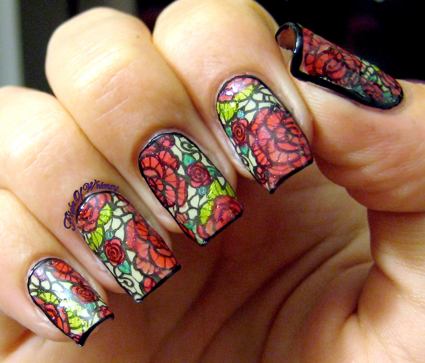Витраж на ногтях смотрится очень богато и роскошно, делает ноготки изящными и утонченными.