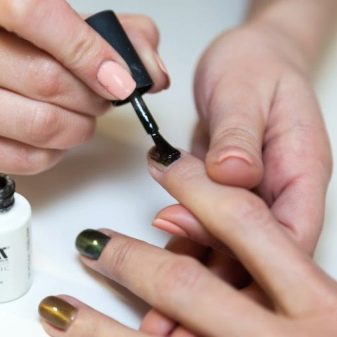 Если у вас небольшой опыт работы с гель-лаками, а светоотражающим видом вы пользуетесь впервые, рекомендуем воспользоваться полезным лайфхаком для достижения необходимой плотности и насыщенности выбранного цветника. В первую очередь он пригодится мастеру при желании клиента выполнить покрытие в технике «под кутикулу»: