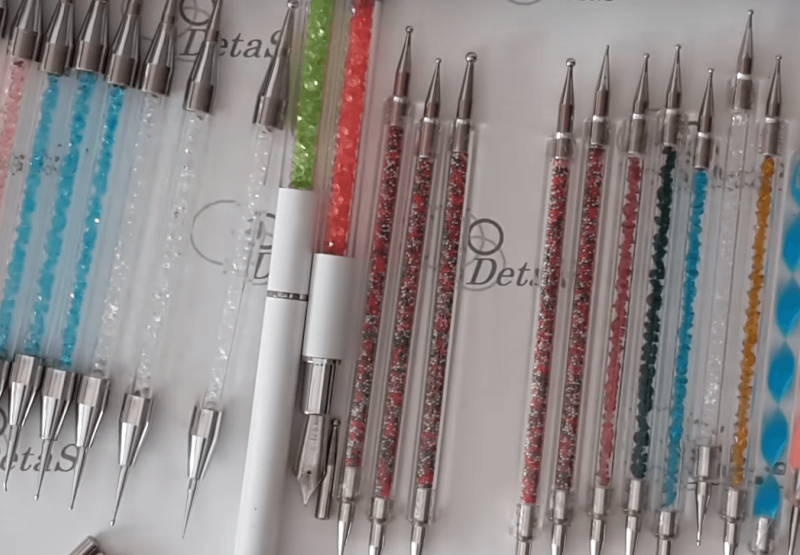 В нейл-арте есть специальный инструмент, с помощью которого можно наносить на ногти идеально ровные кружки — дотс. Он представляет собой вытянутый пластмассовый цилиндр (наподобие обычной авторучки), с шариками различного диаметра на обоих концах.