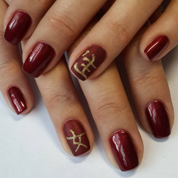 Можно комбинировать и красные, черные тона основы, на которых рисуют иероглифы золотыми цветами на ногтях
