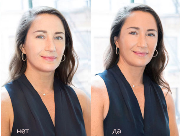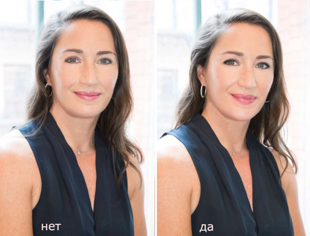После лицо смотрится совсем по-другому: свежее и эффектнее. Помимо этого, изящно подчеркнуты достоинства и замаскированы недостатки.