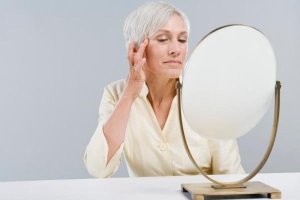 - области лица с явными возрастными изменениями в виде складок в углах губ, возле носа, темные круги около глаз необходимо осветлять, то есть использовать для нанесения в этой зоне самые светлые тона корректора или пудры. Все дефекты в виде нависших век, пухлых и одутловатых щек, отечности следует наоборот затемнять, применяя более темные оттенки тональной основы, пудры или теней;
