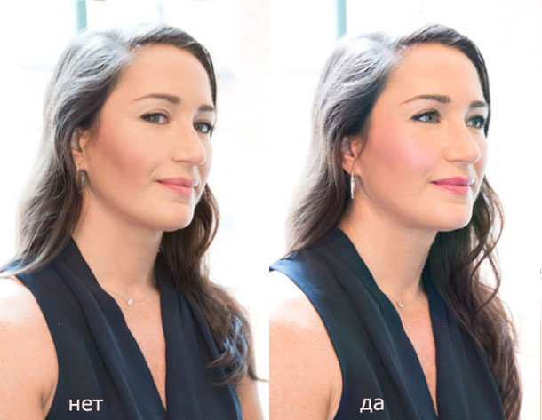 В светлое время суток, особенно в летнее время года, многие специалисты предпочитают и вовсе отказаться от румян для антивозрастного макияжа.