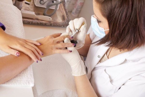 В качестве альтернативы размачиванию мастера нередко применяют метод спиливания покрытия при помощи аппарата для маникюра. Они спиливают топ и цветной слой, стараясь оставить часть базы, не повреждая, таким образом, ноготь. Это хороший вариант для тех, кто все время носит покрытие. Однако дерматологи рекомендуют давать ногтям отдых на пару недель, питая и восстанавливая их в этот период.
