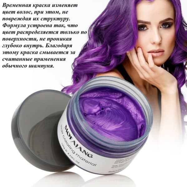 - Она легка в использовании, наносить ее просто, она без проблем удаляется с кожи, да и на волосах не задерживается надолго, так что даже самый неудачный эксперимент с прической пройдет без всяких негативных последствий.