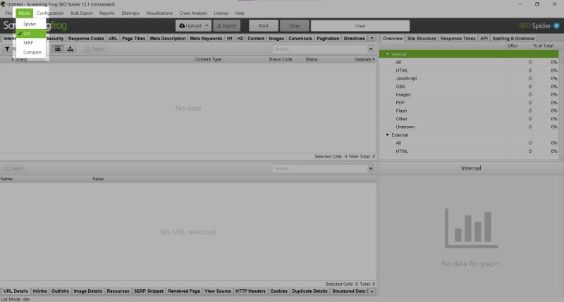 Переключение рабочей поверхности в программе Screaming Frog SEO