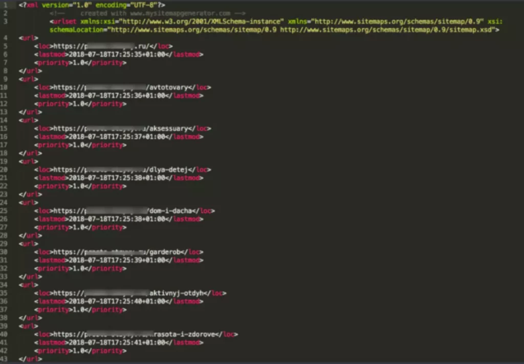 <?XML version="1.0" encoding="UTF‑8"?> <urlset XMLns="http://www.sitemaps.org/schemas/sitemap/0.9"> <url> <loc>https://topvisor.com/</loc> </url> </urlset>