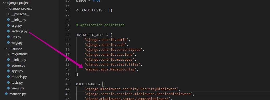 Это приложение мы должны добавить в файл ‘settings.py’ в ‘INSTALLED_APPS’: