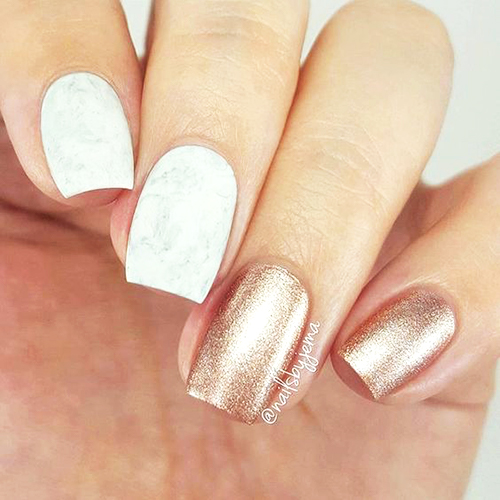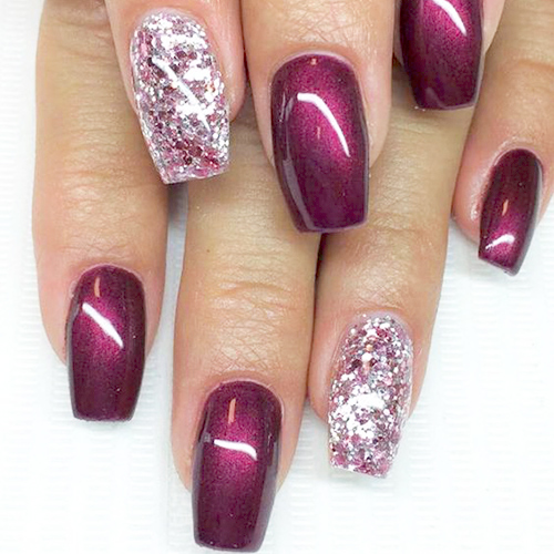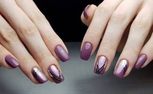 Популярны также серебряные оттенки, розовые, бордовые, золотые и голубые. Маникюр получается очень насыщенным и оригинальным. Ниже можно посмотреть интересные варианты.