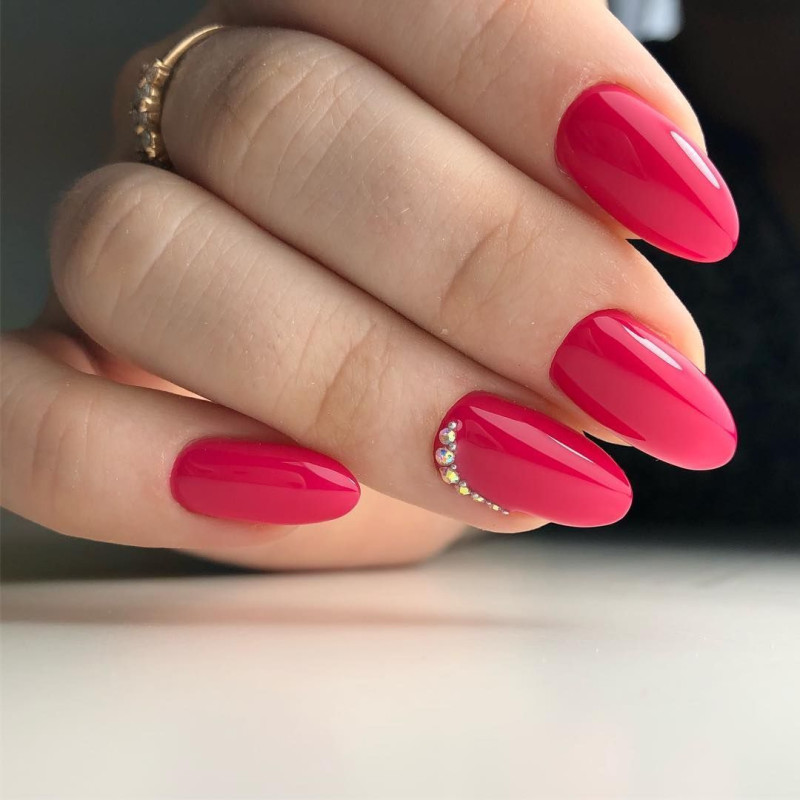 2) Оттенки красного – это классика, которая никогда не выйдет из моды. Красный лак из года в год занимает лидирующее место в создании модного маникюра. Чаще всего оттенки красного можно увидеть на коротких ногтях.