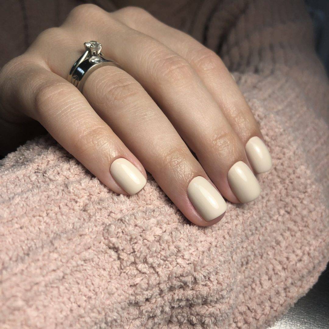 Чтобы сделать элегантный маникюр на коротких ногтях, мастеру достаточно покрыть ногтевые пластины одним светлым тоном. Лучшего всего выбрать какой-нибудь нюдовый оттенок.