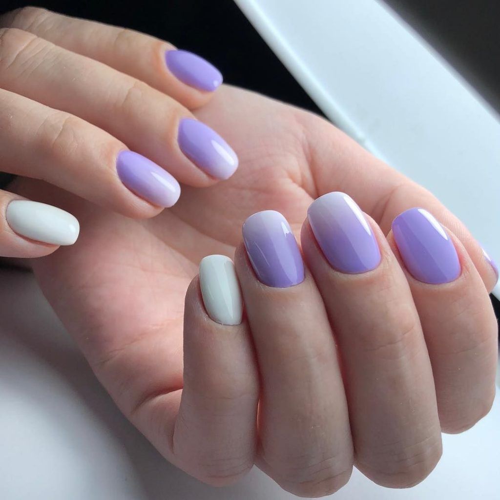 Темные оттенки сложно сочетать в омбре вручную начинающим мастерам, поэтому с задачей без проблем справиться аэрограф. Сначала ногти покрываем фоновым лаком, а затем белой краской наносим 2-4 слоя градиента. Закрепляем все глянцевым топом после полного высыхания краски. Благодаря сочетанию светлого и темного тона, дизайн хорошо будет смотреться и в весенне-летнем сезоне с легкими, воздушными нарядами.