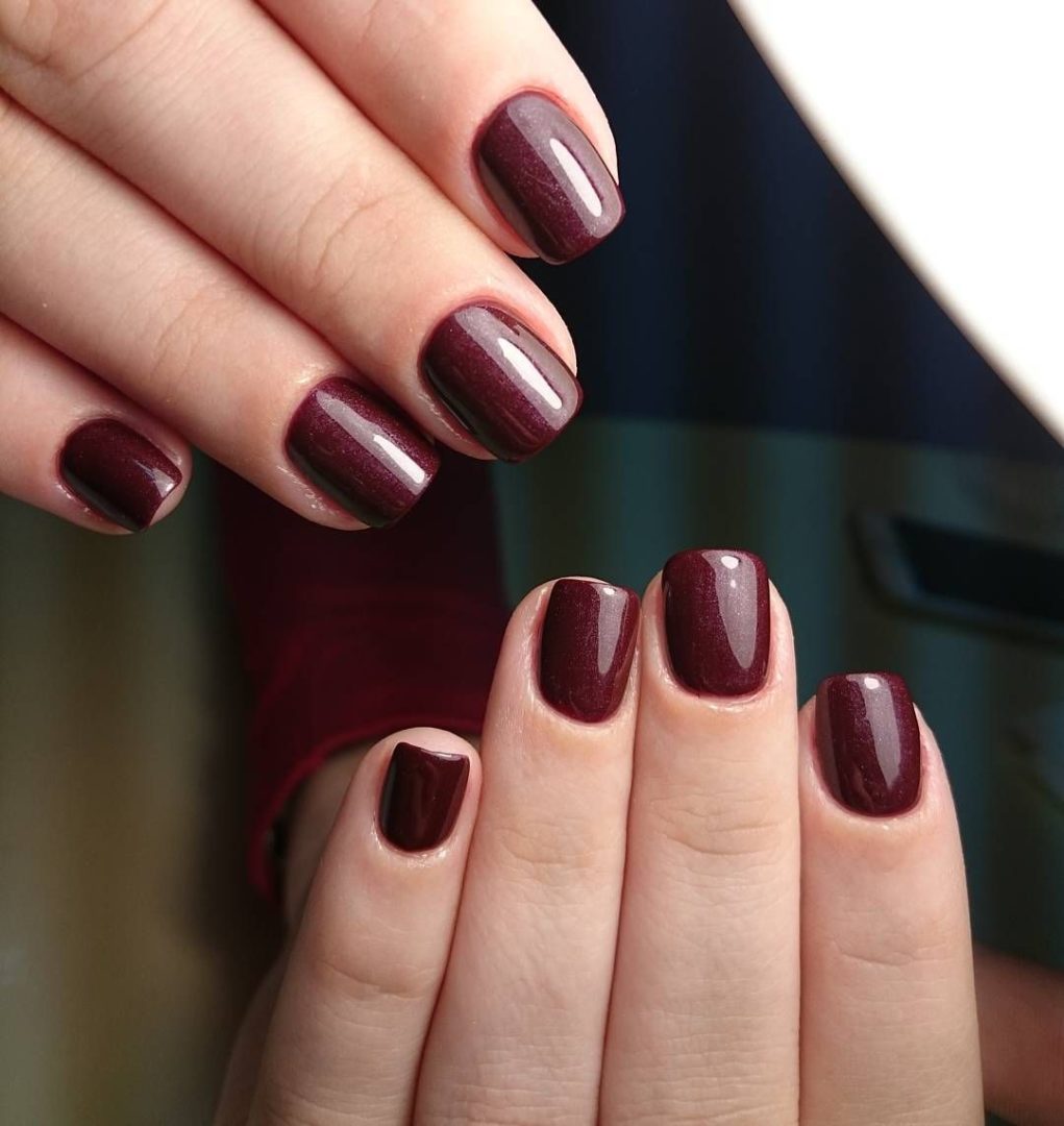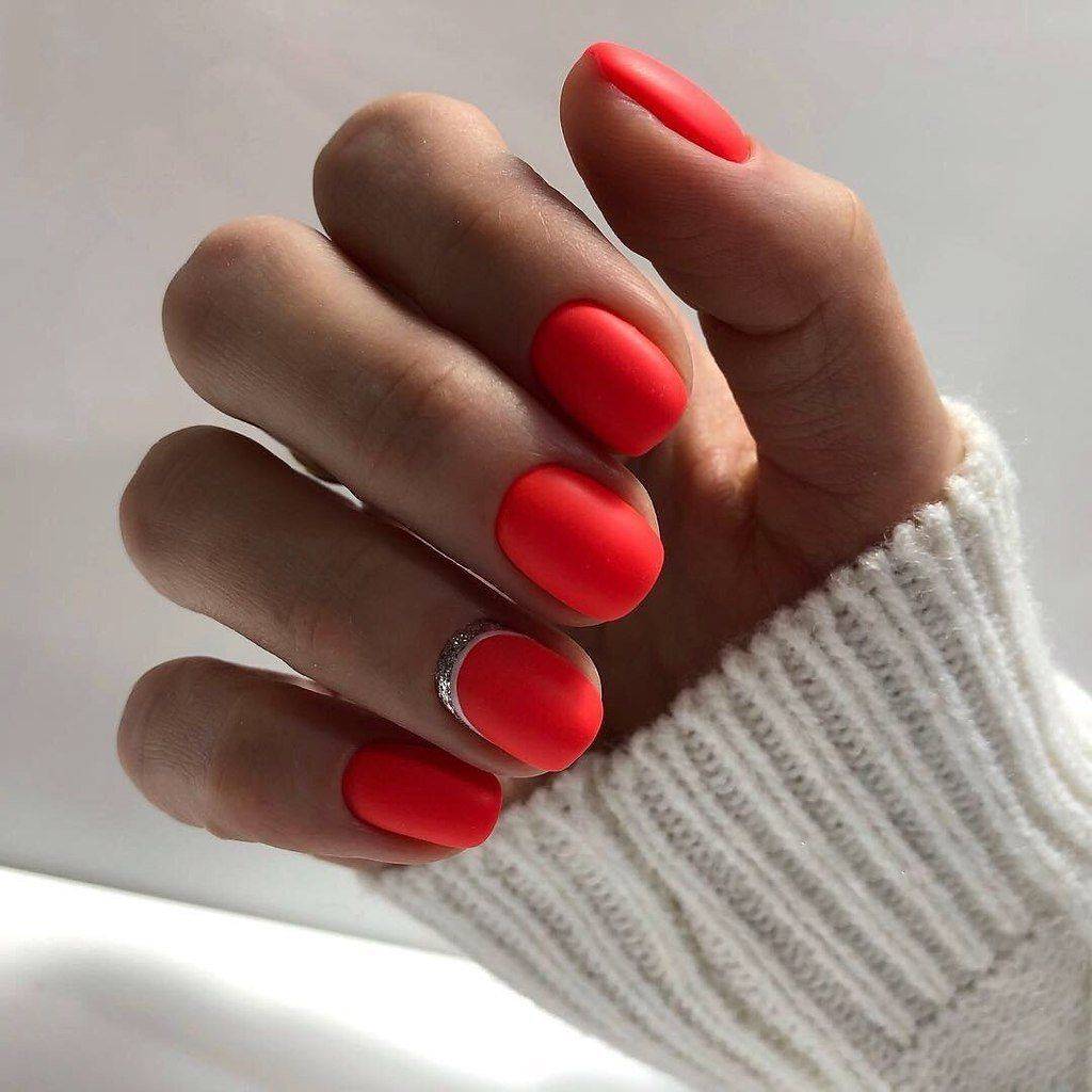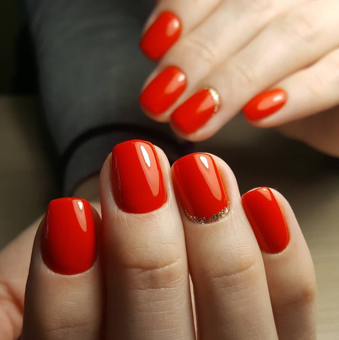 2) Оттенки красного – это классика, которая никогда не выйдет из моды. Красный лак из года в год занимает лидирующее место в создании модного маникюра. Чаще всего оттенки красного можно увидеть на коротких ногтях.