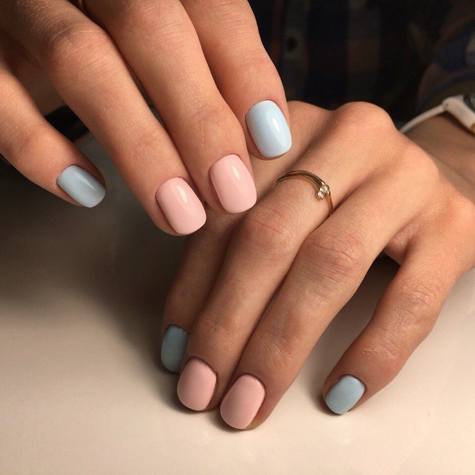 Нежная пастельная цветовая гамма определенно больше подходит для экспериментов. Здесь вы вряд ли получите смелые и неожиданные сочетания. Но в то же время, будете уверенны, что маникюр получится достойным. Согласно модным тенденциям, украшать покрытие рисунком или декором не обязательно. Выбирайте тот вариант, который больше всего подходит к образам.